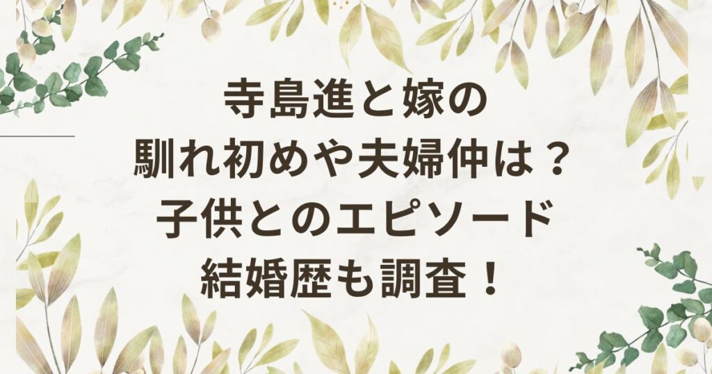 寺島進の嫁はあゆみ!馴れ初めや前妻など結婚歴も調査!